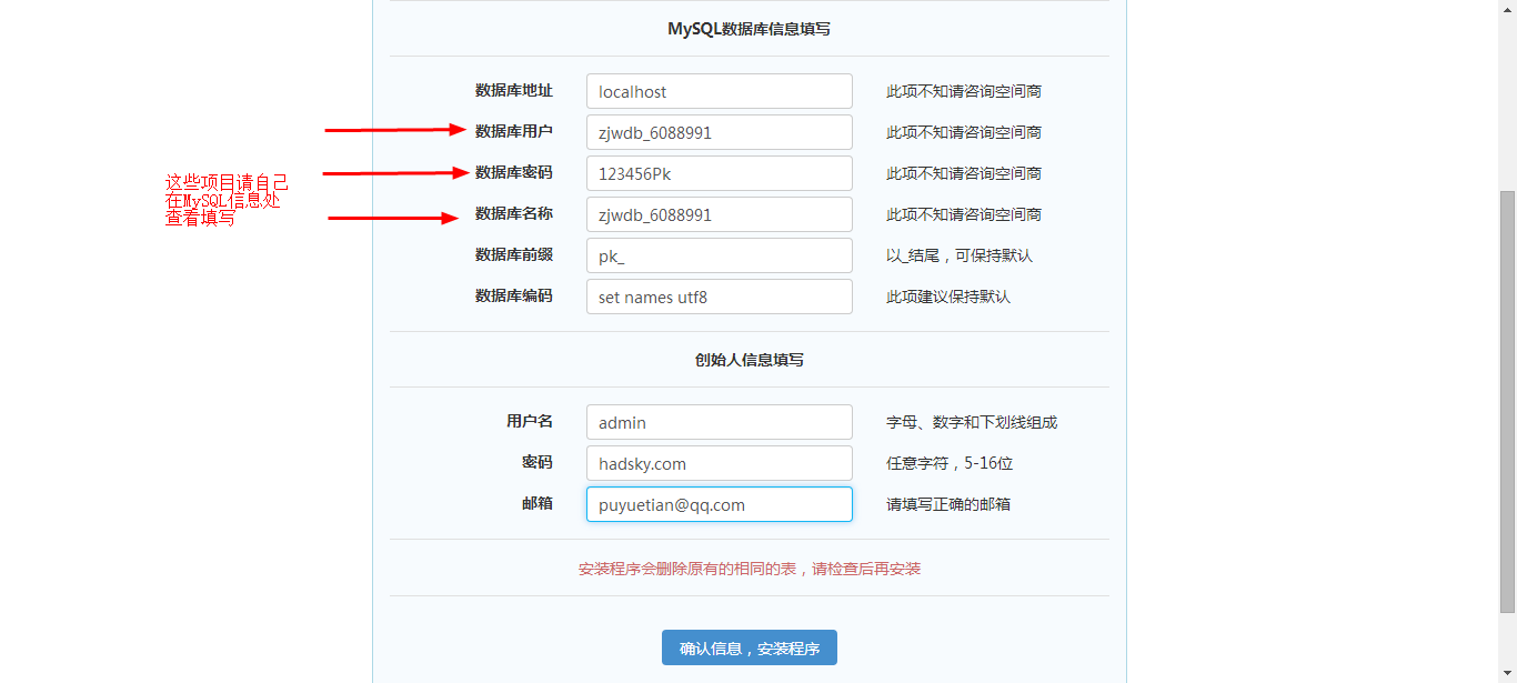这些信息若有不懂的地方请自行咨询空间商,作者也不知道您的数据库信息,点击确认信息,安装程序即可完成安装,点击登录登录您刚才设置的创始人信息,进入后的按钮在下: