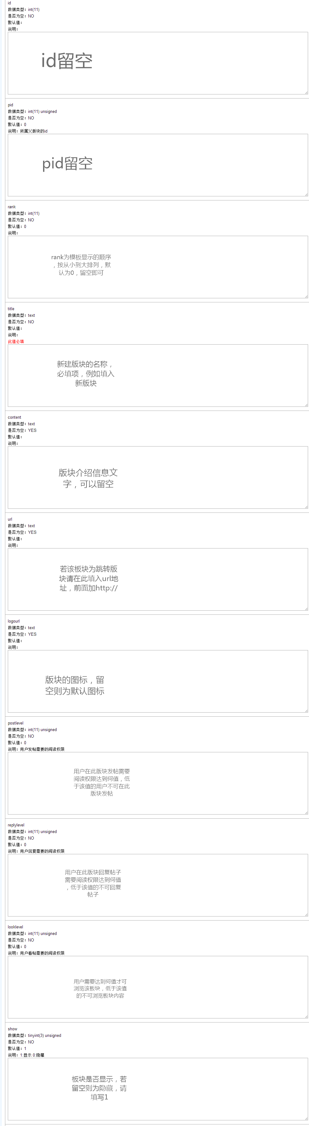 新建父版块一般只需填写title和show两项,然后点击保存即可。